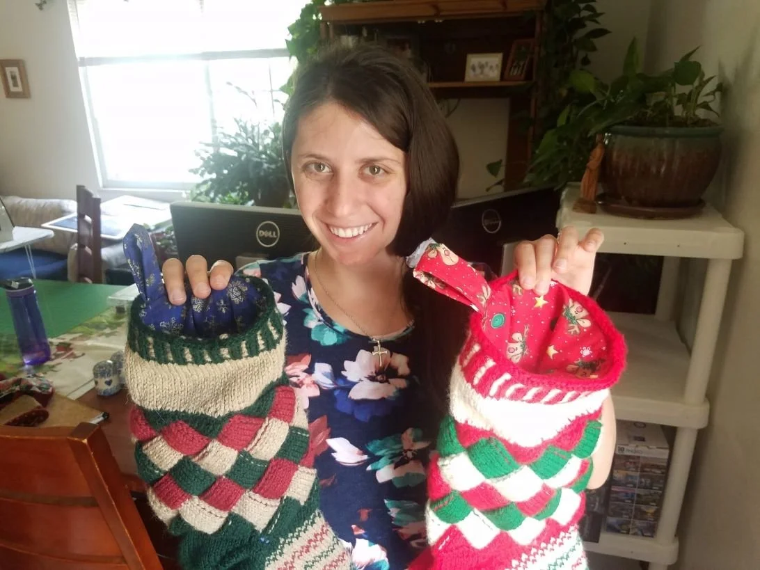 She enjoys knitting and sewing and she's really great at it!